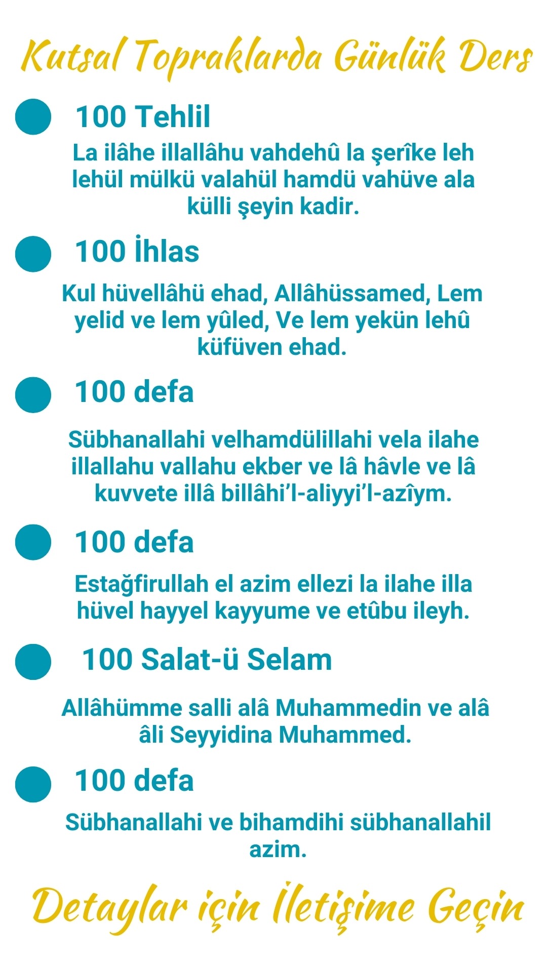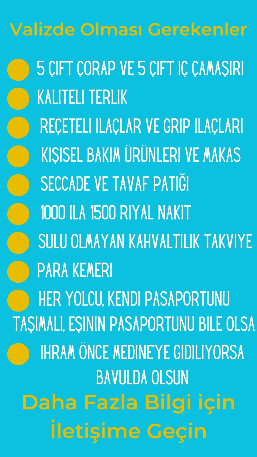 Sizler de 23. seferimde bana katılmak ve bu kutlu yolculukta Efendimizin (sav) ayak bastığı mübarek mekânlarda siyer umresi yapmak, O’nun niyetlendiği 4 noktadan topluca 4 umre yapmak ve O'nun izini sürerek maneviyatı derinlemesine hissetmek üzere birlikte yürümek isterseniz bizi hemen arayın!
